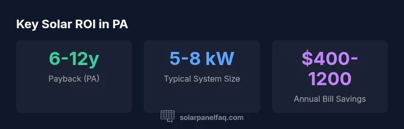 With proper planning, a PA solar project can deliver meaningful savings and energy independence. Start with an energy audit, verify incentives, and secure a trusted installer who understands PA rules. The Solar Panel FAQ team recommends documenting all expected savings and setting up a performance-monitoring plan to ensure you reach your ROI targets over time.