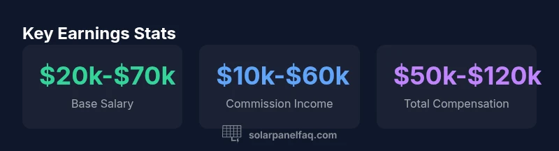According to Solar Panel FAQ Analysis, 2026, total compensation for solar panel salespeople generally falls between $50,000 and $120,000 per year. Base salaries typically range from $30,000 to $70,000, with commissions adding $20,000 to $60,000 depending on region, company, and performance. Actual earnings can be higher with bonuses and renewals, but vary widely by employer and market maturity.
