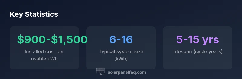Different battery chemistries bring distinct price-per-kWh, performance, and warranty tradeoffs. Lithium-ion chemistries (including NMC and LFP variants) dominate residential installations because of compact size and long cycle life, but they vary in price. Lead-acid options are cheaper upfront but offer far fewer cycles and lower depth of discharge, which affects long-term cost per usable kilowatt-hour. Within lithium, LFP (lithium iron phosphate) is increasingly popular due to safety and longevity, though it may carry a premium over older Li-ion formulations. Expectations for cycle life, depth of discharge, and temperature tolerance should be factored into your cost-per-kWh math. Solar Panel FAQ Analysis, 2026 notes that the choice of chemistries often governs not just upfront cost but also maintenance and replacement schedules. For most households, balancing upfront investment with expected savings over 10–15 years yields the best value, especially when paired with a solar array and smart energy management.
