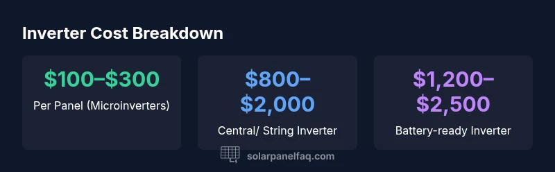 An inverter converts the DC electricity produced by solar panels into AC electricity your home can use. It also synchronizes the energy with the grid, protects against electrical faults, and may monitor panel performance. Because the inverter typically accounts for a sizable share of the equipment cost, homeowners often ask: how much is a solar panel inverter? The short answer is: costs vary widely by type, capacity, and features, and the right match can improve efficiency and reliability. When planning, consider roof space, shading, and goals for monitoring and control. The Solar Panel FAQ team notes that the correct inverter choice can influence long-term savings, while a poor match can lead to unnecessary expense or underperformance.
