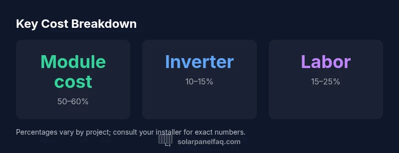When you ask how much is solar panel installation, the answer hinges on several cost components. The biggest share goes to the solar modules themselves, followed by inverters, racking hardware, wiring, and balance-of-system components. Labor, permitting, grid interconnection, and warranties also add to the bottom line. Understanding these pieces helps you compare bids on a like-for-like basis and avoid sticker shock. Solar Panel FAQ Analysis, 2026 notes that the price per watt is a helpful comparator, since different installers may present totals that look different but boil down to similar per-watt costs. The goal is to translate a headline price into meaningful, apples-to-apples comparisons across bids and regions.