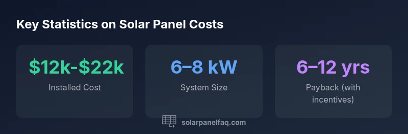 According to Solar Panel FAQ, the typical residential solar installation costs between $12,000 and $22,000 before incentives for a 6–8 kW system. Costs vary by roof type, location, and panel quality. Incentives can reduce the net price by 10–40%, affecting payback timelines. As the Solar Panel FAQ team notes, budgeting should account for permitting, wiring, and potential electrical panel upgrades to ensure a smooth project.