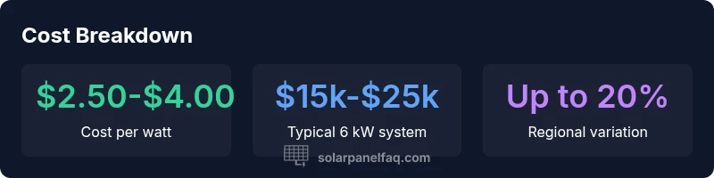 The installed cost per watt typically ranges from $2.50 to $4.00, depending on region and equipment. Readers should compare quotes on a per-watt basis to account for differences in system size and components.