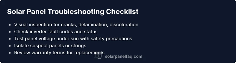 A bad solar panel can fail to deliver expected power, degrade output over time, or cause inverter warnings. According to Solar Panel FAQ analysis, early self-diagnosis can prevent unnecessary service calls. In this section you will learn the most common indicators, from visual damage to performance gaps, and how to verify them with safe checks. Start with a patient, methodical approach rather than guessing. The goal is to determine whether the issue lies with the panel itself, or other parts of the system such as wiring, the inverter, or shading conditions. Remember: how to tell if solar panel is bad is about isolating the panel’s condition from the rest of the solar system.