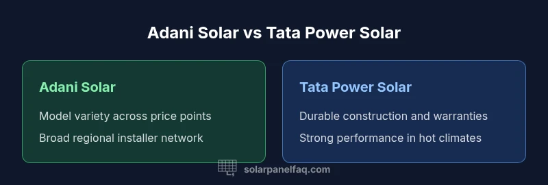 Adani Solar and Tata Power Solar are prominent names in India’s residential and commercial solar markets. Each brand benefits from a large domestic footprint, extensive installer networks, and ongoing product development. Adani’s portfolio often emphasizes volume-focused manufacturing and broad distribution, while Tata Power Solar puts emphasis on robust design and long-term warranties. When evaluating, consider model-by-model performance, regional service availability, and how each brand’s supply chain handles parts and service in your area. The Solar Panel FAQ analysis notes that both brands can deliver high-quality modules, but local support and model choice are critical to achieving your home’s best return on investment.