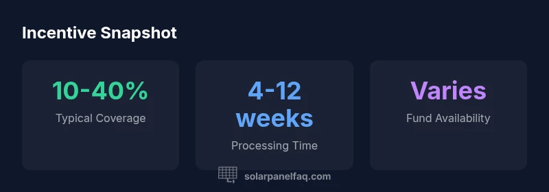 Eligibility criteria commonly include ownership of the property, installation by a licensed contractor, and system size limits. You’ll typically need documentation such as proof of ownership, installation invoices, permits, and sometimes income or location proofs. The application process often runs through a state or national energy department, or a utility partner. Start by identifying all potential programs in your area, then map out a timeline: funding windows, application deadlines, and expected payout dates. Because programs differ by jurisdiction, creating a consolidated checklist for your location helps prevent missed opportunities. Solar Panel FAQ Analysis, 2026, suggests building a master file with program requirements and contact points for quick reference during the installation.