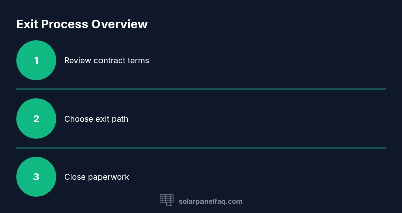 There are several routes to leave a solar lease: buyout, transfer/assignment to another party, early termination, or refinancing through the lender (if allowed). Each option has different costs, timelines, and risk profiles. Buyers should start by reviewing the original contract, rider documents, and any amendments. Many solar lease agreements spell out an early termination fee schedule, residual value, and whether the system can be sold or removed early. The Solar Panel FAQ team notes that the most common exits are a buyout or a transfer. In some cases, lenders will permit a third-party assumption, where a new owner takes over the contract with your consent, provided the new owner meets credit criteria. This early planning reduces surprises and gives you leverage during negotiations. It’s essential to map out your energy usage, monthly payments, and total remaining balance so you can compare exit paths on a like-for-like basis. Throughout this section we’ll reference typical terms and practical steps, with real-world considerations for homeowners.