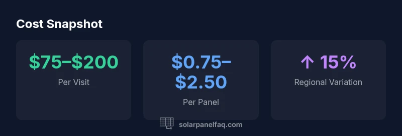 Costs for cleaning solar panels are not a fixed fee. The variation reflects several real-world factors: roof height and accessibility, panel layout and size, dirt level, local labor rates, and whether water is included. The Solar Panel FAQ team notes that weather patterns and seasonal dust can influence how often your system needs cleaning and, consequently, the cost per visit. For homeowners, this means you should expect a price range rather than a single quote. When evaluating bids, focus on safety practices, equipment used, and whether the service includes inspection of panels for micro-cracks or dirt-induced efficiency loss. Good cleaners explain what they will do, such as wiping the glass, rinsing with purified water, and checking inverters for anomalies, all of which can affect price.