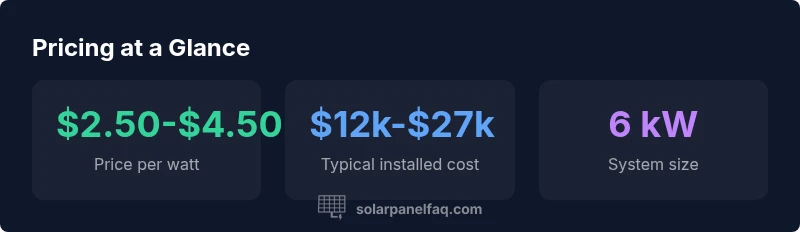 In 2026, the typical installed price for residential solar panels ranges roughly from $2.50 to $4.50 per watt, translating to about $12,000 to $28,000 for a standard 6 kW system before incentives. Prices vary by region, equipment quality, and installer, so get multiple quotes and model your savings with or without incentives.
