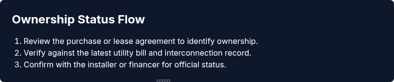 Collect the purchase contract or lease/PPA, any financing agreements, warranty papers, the latest utility bill, and any interconnection documentation. This creates the foundation for a confident determination of ownership.