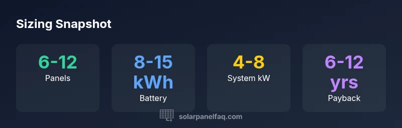 Most homes fall in the 6–12 panel range with an 8–15 kWh battery, depending on daily usage and roof access. A professional model can refine this based on your bills and roof.
