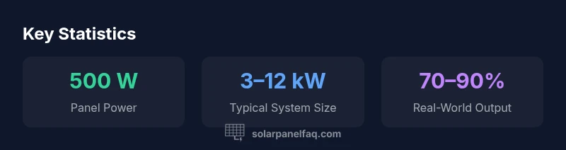 To translate wattage into actual energy production, homeowners must consider daily sun exposure, roof space, and electrical needs. A practical rule of thumb for a 5 kW target is about ten 500W panels. This setup bundles into a typical inverter and conduit network and often suits grid-tied configurations well. For larger homes or off-grid ambitions, a 10–20 panel array (roughly 5–10 kW) may be appropriate, depending on local climate and incentives. The Solar Panel FAQ analysis indicates that installers frequently pair 500W panels with either string inverters or microinverters to optimize performance in partial shade and to simplify monitoring. Even on limited roof space, a strategically oriented 500W array can contribute substantially to electricity needs when combined with high-efficiency components and optimized racking.