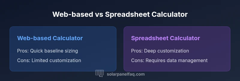 Web-based solar panel and battery calculators provide quick, baseline sizing using current utility data and typical usage patterns. Spreadsheets offer deeper customization for edge cases, but require more data handling and math. Start with an online calculator to establish a baseline, then validate results with a spreadsheet or offline model when you need to test unusual scenarios.