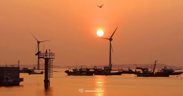 The panel charges a battery from sunlight, so the light can run after sunset depending on sun exposure and battery health.