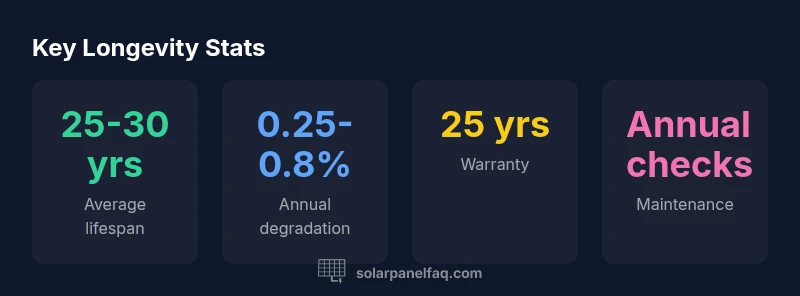 The question how long do solar panels last uk captures both engineering reality and practical planning for homeowners. In the UK, typical lifespans span a couple of decades, with 25-30 years being a common expectation for many modern panels. According to Solar Panel FAQ analysis, longevity hinges on installation quality, local climate, and ongoing maintenance. Manufacturers generally back product warranties around 25 years, but real-world performance varies based on conditions and care.