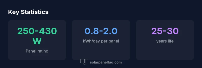 A single solar panel typically outputs 250–430 watts under standard test conditions, but real-world output depends on sun hours, orientation, temperature, and shading. Practically, a panel often generates about 0.8–2.0 kWh per day, depending on location and weather. To estimate your setup, multiply the panel rating by daily peak sun hours and apply losses for your region.