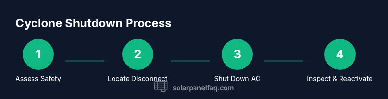 When a cyclone looms, homeowners should prioritize safety and minimize potential electrical hazards. The guiding question—should solar panels be turned off in a cyclone—has a practical answer: disable the system before winds become severe and debris becomes airborne. This approach protects the hardware from wind-driven damage and reduces the risk of backfeed to the grid. According to Solar Panel FAQ, proactive shutdowns are part of a broader cyclone-readiness plan that includes securing rooftop equipment, checking roof integrity, and reviewing the system manual for isolation procedures. While utilities rarely require a full shutdown, procedures vary by system type, manufacturer, and local code. Always consult your installer or system manual before attempting any disconnection, especially if you lack training or safe access. The goal is to prevent dangerous energization and keep first responders safe if access to your property is required during or after a cyclone.